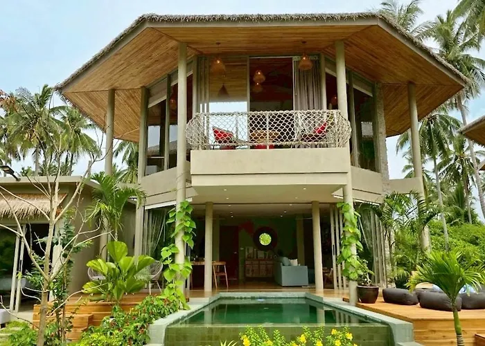 Vila Carbana Lodge, Palmy Beach Villa, Eco Lodge Hua Thanon je umístěna 4 km od Vodopád Namuang 2, je 2-ložnicové ubytování s terasou. Carbana Lodge, Palmy Beach Villa, Eco Lodge obsahuje soukromý plavecký bazén, nabízí ubytování vedle Samui Mosque@Hua Thanon.